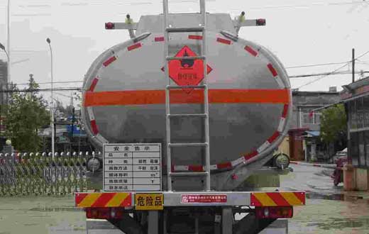 罐體有效容積:22.0立方米,危險貨物運輸車輛的類型為FL型,介質(zhì):汽油;類項號:3;罐體尺寸(長×長軸×短軸)(mm)為:7550×2300×1600,7450×2400×1550;僅采用1995+5000mm軸距;側(cè)、后防護裝置材料材質(zhì):Q235B,側(cè)、后防護均采用螺栓連接,后防護裝置斷面尺寸為(mm):80×150,后部防護離地高度:500mm;隨底盤選裝駕駛室,選裝箱門樣式;安裝具有衛(wèi)星定位功能的行駛記錄儀,排氣管前置,安裝前盤制動器和限速裝置,限速80km/h,僅采用底盤子午線輪胎;ABS型號/生產(chǎn)廠家:3631010-C2000/東科克諾爾商用車制動系統(tǒng)(十堰)有限公司;發(fā)動機型號及油耗值(L/100km)為:B6.2NS6B230(36.1),B6.2NS6B245(36.1). 該車后軸為采用空氣懸架.