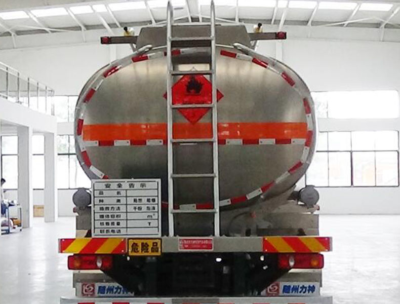 罐體總?cè)萘?21.5立方米,罐體有效容積:20.4立方米,危險貨物運(yùn)輸車輛的類型為FL型,介質(zhì)zui大密度830千克/立方米;罐體尺寸(長×長軸×短軸)(mm)為:7500×2300×1600;僅采用1995+5000mm軸距;側(cè)、后防護(hù)裝置材料材質(zhì):Q235B,側(cè)、后防護(hù)均采用螺栓連接,后防護(hù)裝置斷面尺寸為(mm):80×150,后部防護(hù)離地高度:400mm;隨底盤選裝駕駛室及油箱和后處理器外觀,選裝尾部帶工具箱,選裝左右兩側(cè)出口箱及管箱樣式;安裝具有衛(wèi)星定位功能的行駛記錄儀,排氣管前置,安裝前盤制動器和限速裝置,限速80km/h,僅采用底盤子午線輪胎;安裝EBS,EBS型號/廠家:EBS5/東科克諾爾商用車制動系統(tǒng)(十堰)有限公司;發(fā)動機(jī)與油耗申報值(L/100km)對應(yīng)關(guān)系為B6.2NS6B260(33.44),YCS06245-60A(31.32);該車后軸采用空氣懸架;轉(zhuǎn)向輪安裝爆胎應(yīng)急防護(hù)裝置;選裝直接供電式ETC車載裝置.