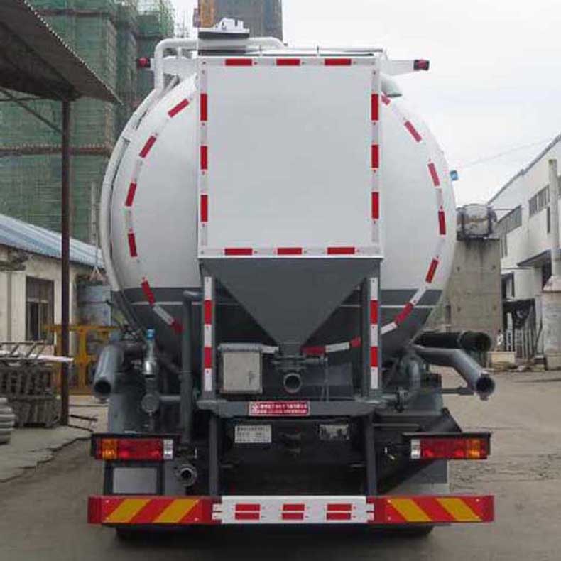 頂部封閉不可開槽,后部不可開啟,罐體有效容積:25.5立方米,介質:煙煤灰;罐體外形尺寸:直段長7000mm,直徑2300mm;軸距/后懸對應關系為(mm):1800+3575+1400/2450,1800+3975+1400/2050;側、后防護裝置材料材質:Q235B,側、后防護均采用螺栓連接,后防護裝置斷面尺寸為(mm):80×150,后部防護離地高度:500mm;隨底盤選裝駕駛室,選裝尾部帶除塵器;安裝帶衛(wèi)星定位功能的行駛記錄儀;ABS系統(tǒng)生產廠家及型號分別為:西安正昌電子股份有限公司(ZQFB-V);發(fā)動機型號及油耗值(L/100km)分別為:WP9H336E62(42.93),WP9H350E62(42.93),WP10H375E62(40.20),WP10H400E62(40.20).
