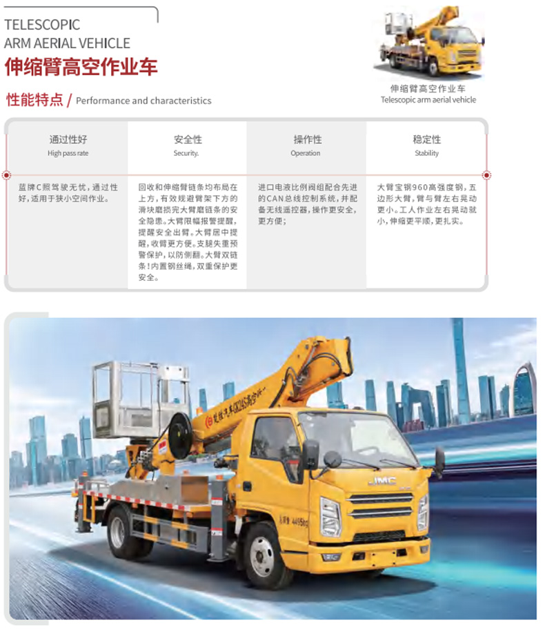 大臂寶鋼960高強度鋼,五邊形大臂,臂與臂左右晃動更小。工人作業左右晃動就小,伸縮更平順,更扎實。