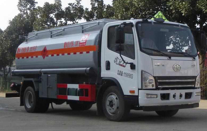 罐體有效容積:8.47立方米,危險貨物運輸車輛的類型為FL型,介質:柴油,煤油,汽油;類項號:3;加油裝置下置時,罐體尺寸(長×長軸×短軸)(mm)為:4700×1800×1300;加油裝置上置時,罐體尺寸(長×長軸×短軸)(mm)為:3900×2000×1400;僅采用3900mm軸距;側、后防護裝置材料材質:Q235B, 側、后防護均采用螺栓連接,后防護裝置斷面尺寸為(mm):80×150,后部防護離地高度:420mm;隨底盤選裝駕駛室,選裝后組合燈,選裝擋泥板,選裝加油機倉廂門;安裝具有衛星定位功能的行駛記錄儀,排氣管前置,安裝前輪盤式制動器及限速裝置,限速80km/h,僅采用底盤子午線輪胎;ABS生產廠家/型號:1.廣州瑞立科密汽車電子股份有限公司/CM4XL-4S/4M;2.浙江萬安科技股份有限公司/VIE ABS-II;加油裝置型號/生產企業:CS20D1110F/正星科技有限公司,80YHCB-60/山東博山齊魯油泵廠,YHCB-1000/5-A,YHCB-1000/5B,YHCB-300/3-B-L/永嘉三江石油機械廠.