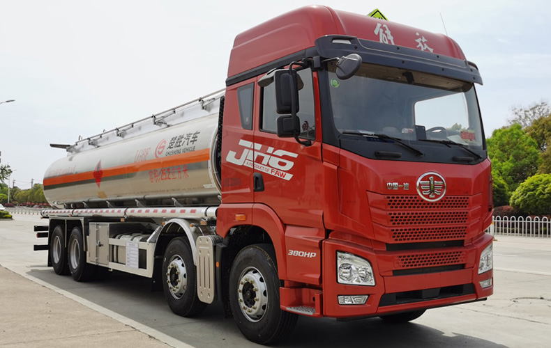 該車適用于危險品運輸,運送危險貨物車輛類型為:FL型.準運介質zui大密度:830千克/立方米,罐體總容量25.2立方米,罐體有效容積24.47立方米,罐體外形尺寸(長×寬×高)(mm):8800×2300×1600.側防護材料為鋁合金,螺栓連接;后防護材料為Q235,螺栓連接,截面尺寸80×140mm,下邊緣離地高490mm.該車為排氣管前置,安裝限速裝置(限速79km/h),安裝前輪pan式制動及子午線輪胎,轉向輪安裝輪胎bao胎應急防護裝置,后軸采用空氣懸架,安裝帶有衛星定位功能的行駛記錄儀.EBS型號/生產廠家:EBS5/克諾爾制動系統(大連)有限公司.發動機/油耗值(L/100km)對應關系為:CA6DL6-38E68/38.13.隨底盤選裝平頂駕駛室.該車可選裝直接供電式ETC車載裝置.罐體上部選裝上走道,第二軸選裝弧形膠制擋泥板或方形擋泥板,選裝左右側后部工具箱及左側工具箱樣式,選裝鐵制滅火器筒,選裝罐體兩側管箱樣式。