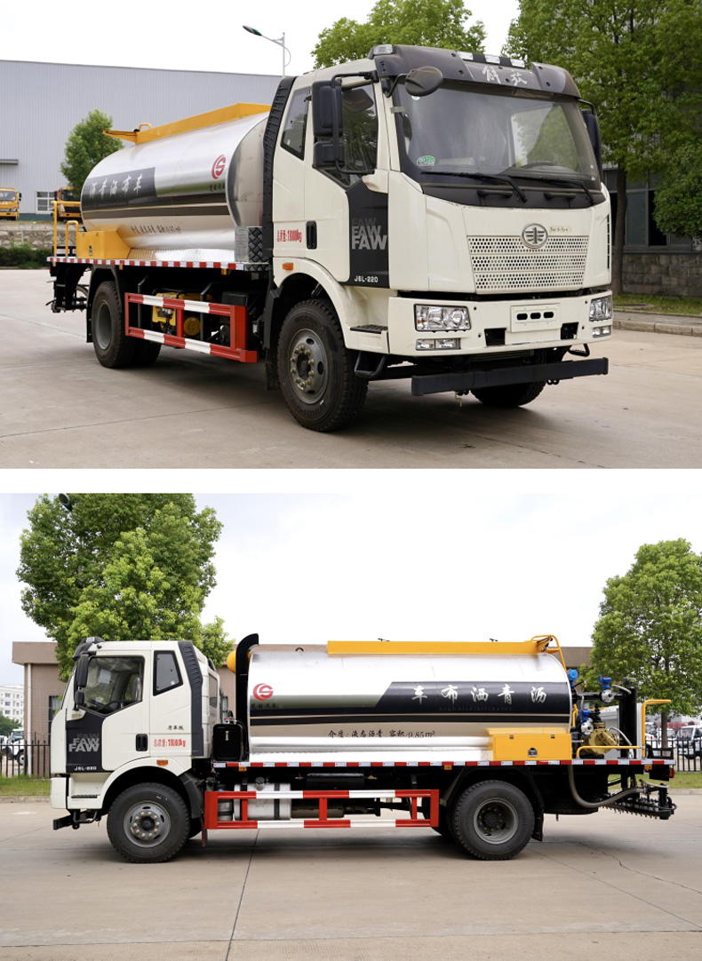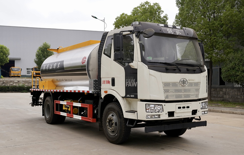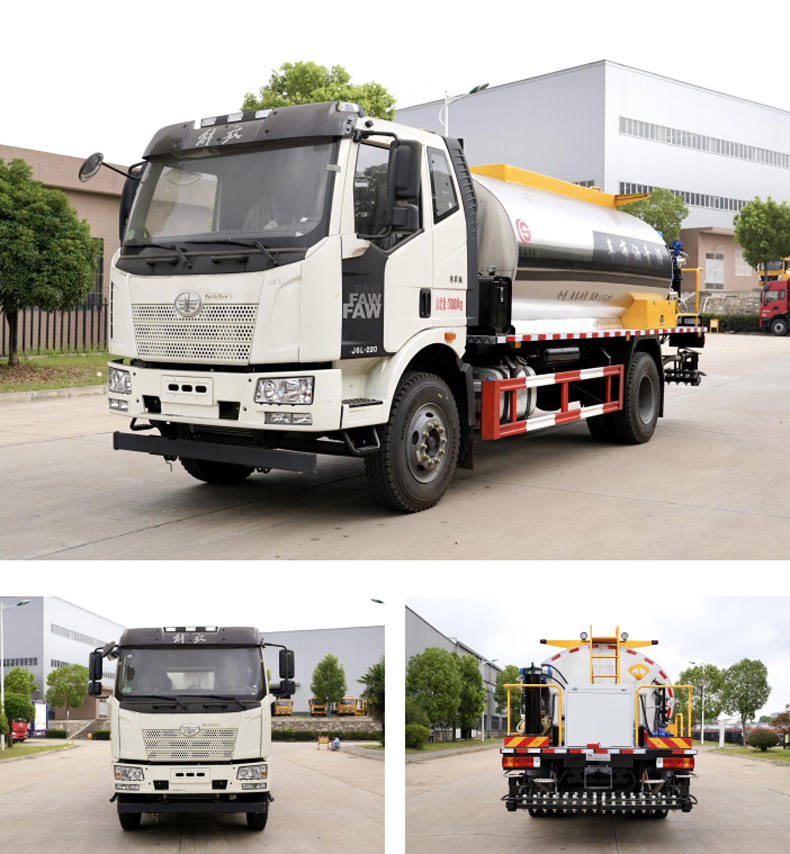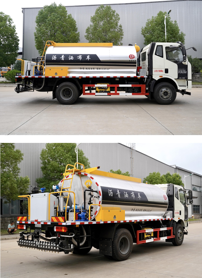 瀝青灑布車_解放J63智能型灑布車(10-12立方)★13908669111★楚勝牌CSC5180GLQCA6瀝青灑布車,采用解放CA1180P62KL2A1E6Z底盤改裝而成,罐體材質為優質碳鋼板,巖板保溫層,罐體表面不銹鋼材質,該灑布車由汽車底盤、瀝青 罐體、瀝青泵送及噴灑系統、液壓系統、燃燒及導熱油加熱系統、控制系統、氣動系統、操作平臺構成。該車操作簡便,用于修筑高等級公路瀝青路面底層的透層油、防水層、粘結層的灑布。更多瀝青灑布車盡在:www.jinshengjie.cn
