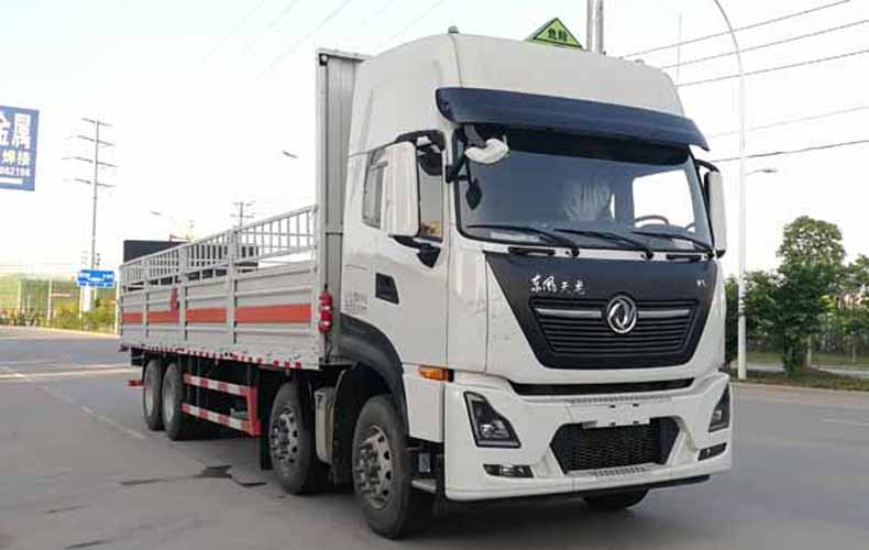 1、該車為危險品運輸車.該車用于運輸具有獨立容器(瓶)包裝的易燃氣體:液化石油氣,壓縮甲烷或甲烷含量高的壓縮天然氣,乙炔,乙烷,丁烷,丁烯,丙烯,二甲醚,壓縮氫,類項號2.1;用于運輸具有獨立容器(瓶)包裝的非易燃無毒氣體:二氧化碳,壓縮氧(氮,空氣,氦,氬,氖),類項號:2.2。液壓升降尾板收起狀態水平長度為290mm,尾板質量為550kg。2、側,后防護材料均為Q235,螺栓連接;后防護截面為圓形,直徑為120mm,下邊緣離地高500mm。選裝后部無液壓升降尾板,選裝后部無尾板時,后防護螺栓連接,截面尺寸120×60mm,下邊緣離地高500mm。3、隨底盤選裝平頂駕駛室;選裝駕駛室前面罩;高頂駕駛室頂部氣喇叭為選裝件;駕駛室前角擾流板為選裝件。選裝駕駛室頂部“東風商用車”企業標識。僅選用排氣管前置、限速裝置(限速80km/h)、前輪盤式制動及子午線輪胎的底盤;安裝帶衛星定位功能的行駛記錄儀。ABS型號/生產廠家:ABS 8/東科克諾爾商用車制動系統(十堰)有限公司。采用的發動機DDi75E350-60對應油耗值為38.1L/100km。后軸采用空氣懸架,轉向輪裝備輪胎爆胎應急防護裝置。該車型可選裝ETC車載裝置。廂體選裝無柵欄,選裝柵欄樣式,選裝貨箱箱板結構。選裝蓄電池及儲氣筒左右安裝位置,選裝后處理隔熱板。