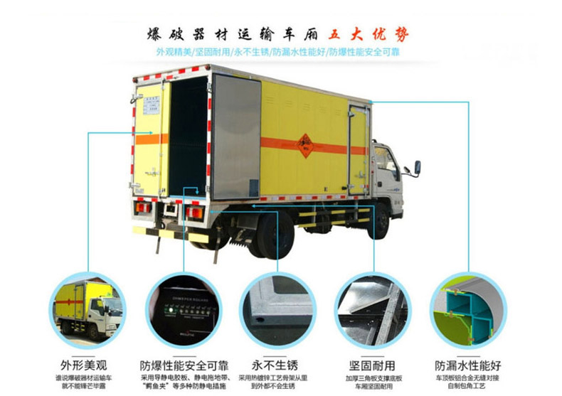 1. 汽車底盤均采用國內質量可靠、性能穩定的品牌產品,如東風、解放、江鈴、慶鈴、福田等系列。整車制作嚴格按照科工委關于《爆破器材運輸車安全技術條件》的文件要求進行。