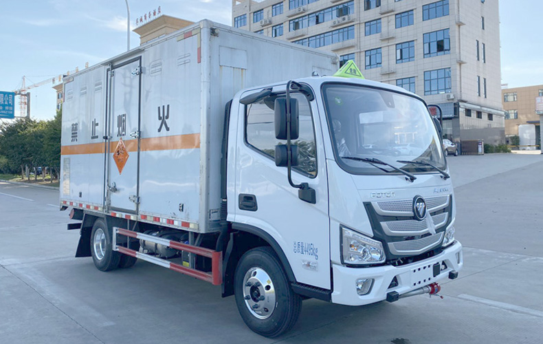 該車適用于運輸危險品.廂體頂部封閉,不可開啟.該車用于運輸具有獨立容器(瓶)包裝的物品,危險貨物運輸車輛類型:EX/Ⅲ.類項號:擴展類項號:1.1B,1.1C,1.1D,1.1G,1.2C,1.2D,1.2G,1.3C,1.3G,1.4C,1.4D,1.4G.側后防護材料均為Q235,螺栓連接,后防護截面尺寸(mm)100×50,下邊緣離地高415mm.廂體側面選裝開門型式及位置,選裝不帶側開門,廂體側面板選裝開百葉窗,僅選用底盤單排駕駛室,選裝儲氣筒樣式.僅選用排氣管前置、限速裝置(限速80km/h)、前輪盤式制動及子午線輪胎的底盤;轉向輪裝備輪胎爆胎應急防護裝置.安裝帶有衛星定位功能的行駛記錄儀.ABS型號/生產廠家:ABS-E/威伯科汽車控制系統(中國)有限公司,ABS-VI·E/廣州瑞立科密汽車電子股份有限公司,YF8/武漢元豐汽車電控系統有限公司.發動機/油耗值(L/100Km)對應關系為:D25TCIF1/11.16,F2.5NS6B131/11.27.選裝ETC.整備質量含備胎,滅火器及隨車工具;貨廂重量為1340,1060kg;材質/厚度:底板材質為Q235,厚度4mm,側板為外Q235+中間阻燃泡沫+內純鋁板,厚度42mm.整備質量/貨箱重量對應關系為(kg):3680/1340,3400/1060.隨底盤選裝前臉標識.