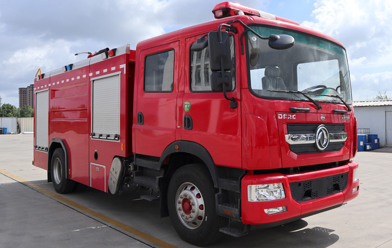 罐體總容積為6.700立方米,水罐容積:5.000立方米,水罐尺寸:1710×2400×1270mm,泡沫液罐容積:1.700立方米,泡沫液罐尺寸:580×2400×1270mm。整體式側防護結構,后防護裝置材料:Q235A,截面尺寸:100×130mm,與車輛連接方式:螺栓連接,后防護離地高度:460mm,ABS生產企業為襄陽東風隆誠機械有限責任公司,型號為ABS/ASR-24V-4S/4M。主要專用裝置有消防泵、消防pao。